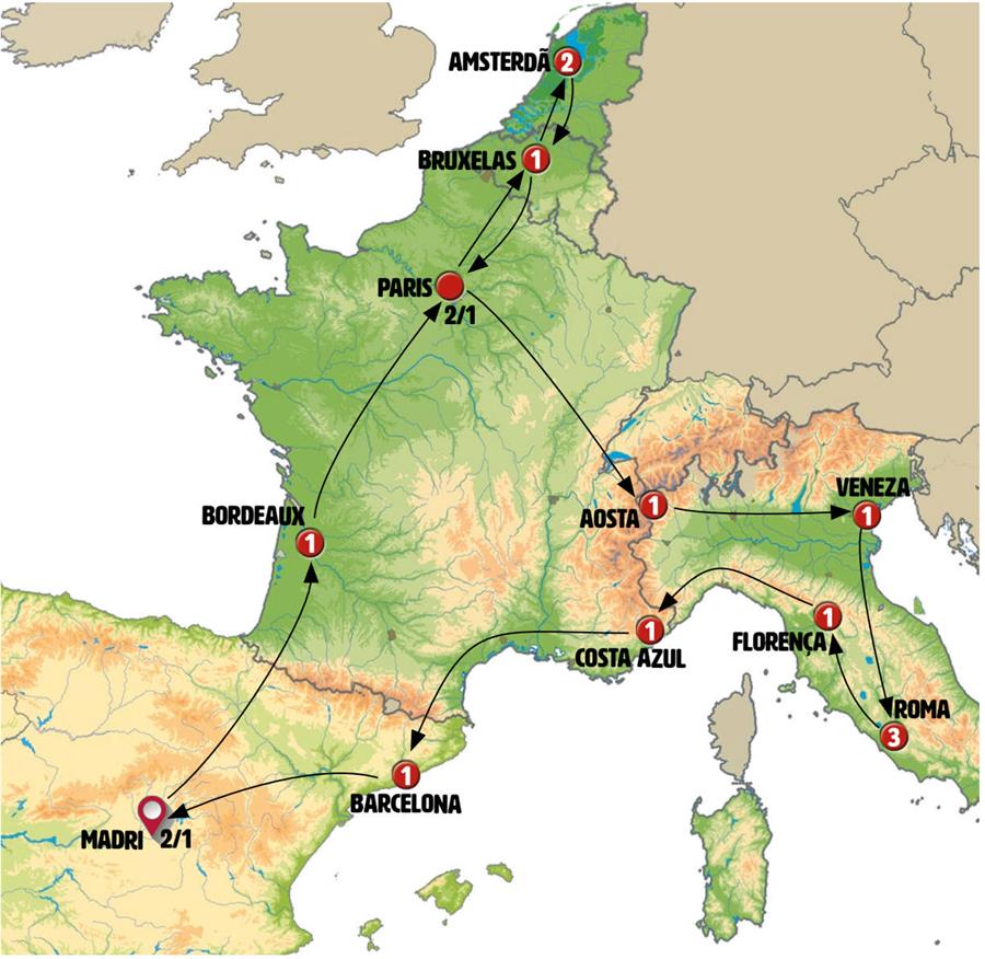 Visita Panorâmica em: Madri, Paris, Amsterdã, Bruxelas, Veneza, Roma, Barcelona