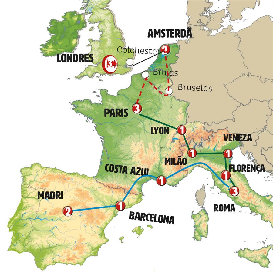 Londres, colchester, ferri colchester volendam, Volendam, Amsterdã, Bruxelas, Paris, borgoña, Beaune, Lyon, Genebra, Milão, Veneza, Florença, Siena, Assis, Roma, Pisa, SESTRI LEVANTE, Cote D´azur, Arles, Barcelona, comarca del penedes, Zaragoza, Madrid.