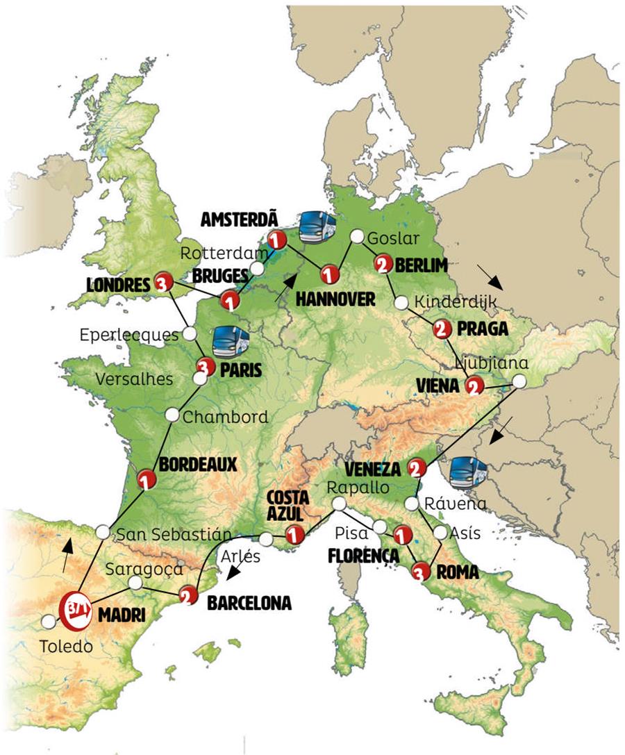 Cidade: Amsterdã-Roma-Roma-Roma-Barcelona-Barcelona-Berlim-Praga-Viena-Madri-Madri-Londres-Londres-Amsterdã-Berlim-Viena-Praga-Veneza-Veneza-Roma-Roma-Roma-Roma