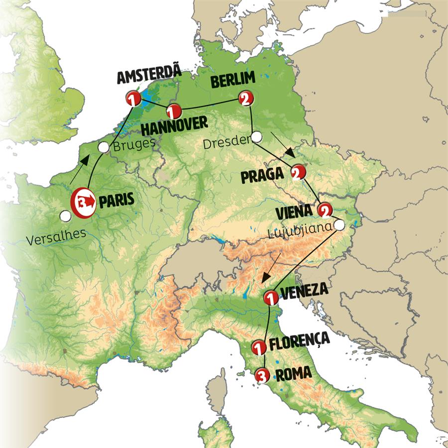 Visita Panorâmica em: Paris, Amsterdã, Berlim, Praga, Viena, Veneza, Florença, Roma