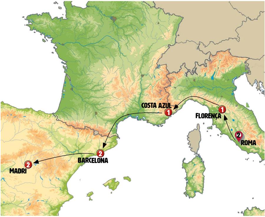 Roma, Florença, Pisa, SESTRI LEVANTE, Montecarlo, Cote D´azur, Arles, Barcelona, Madrid.