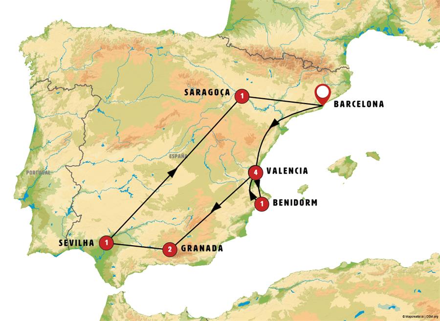 Barcelona, peniscola, Valência, Denia, Benidorm, guadalest, jijona, Alicante, Guadix, Granada, Nerja, Málaga, Ronda, Sevilha, Zaragoza, Poblet.