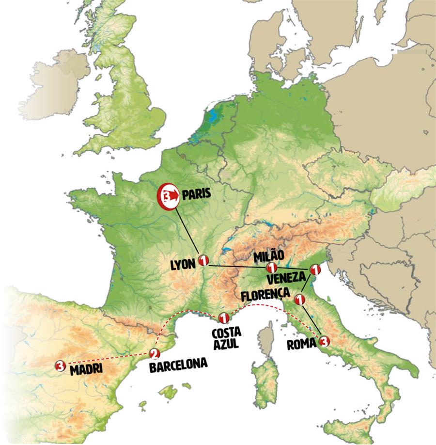 Visita Panorâmica em: Paris, Veneza, Florença, Asís, Roma, Barcelona, Madri
