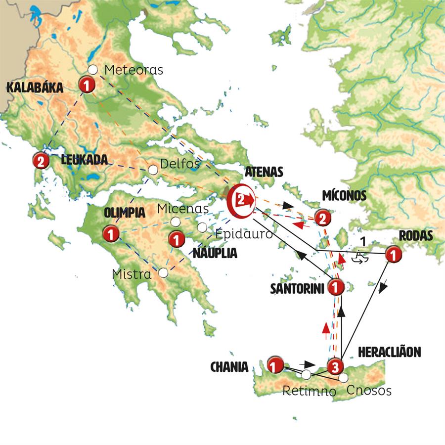 Atenas, ferri atenas rodas, Rodes, Heraclion, Santorini, miconos.
