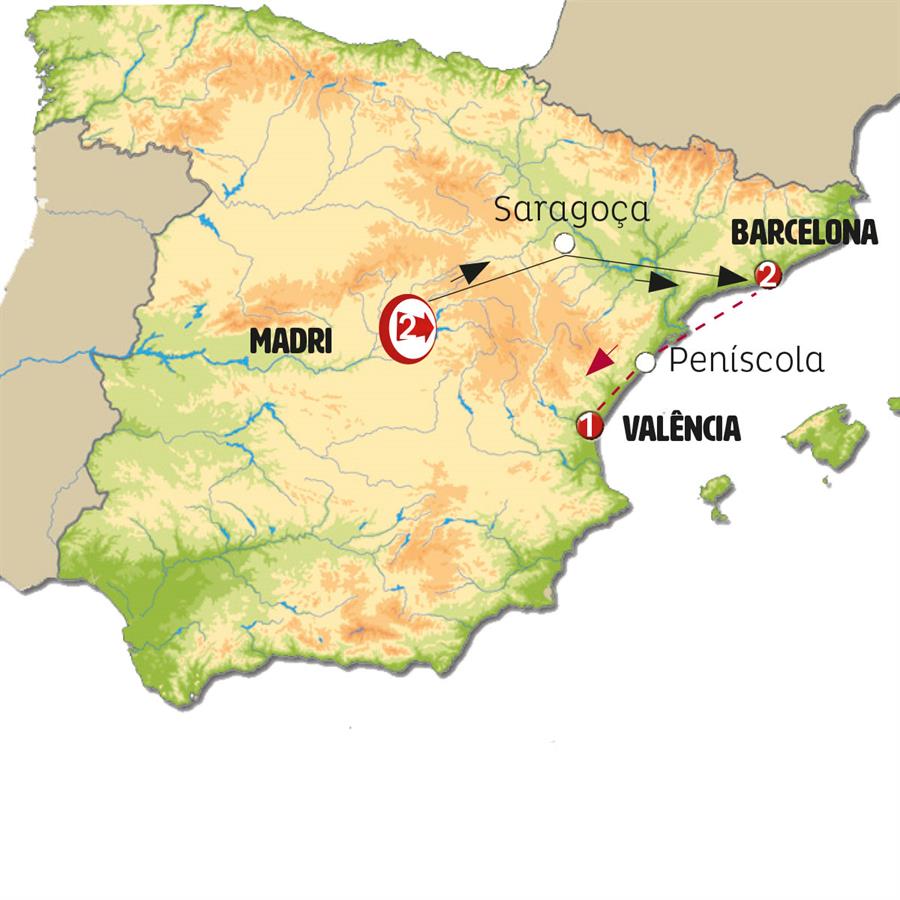 Saída rumo à província de Aragão, atravessando as terras de Castilha. Ao chegar a SARAGOÇA, breve parada para conhecer a Basílica de Nossa Senhora do Pilar. Após o horário do almoço, saída para o Mosteiro de Poblet, rodeado por muralhas e um dos mosteiros medievais mais bem conservados no mundo (entrada incluída). Continuação até BARCELONA e chegada ao final da tarde.