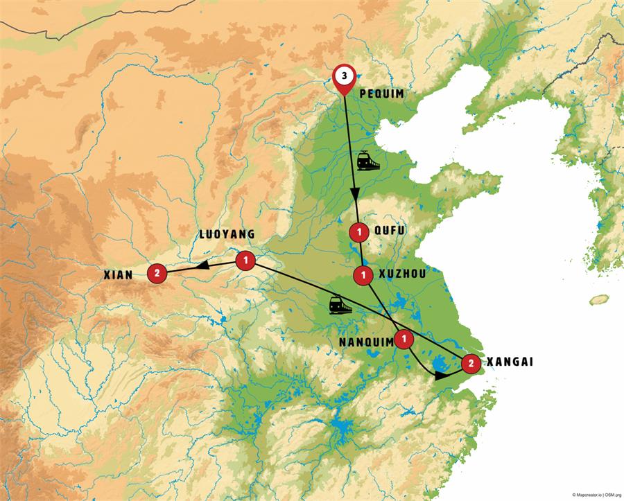 Beijing, taian , Qufu, Xuzhou, Nanjing, Suzhou, Tongli, Shanghai, Luoyang, longmen , sanmexia, Xian.