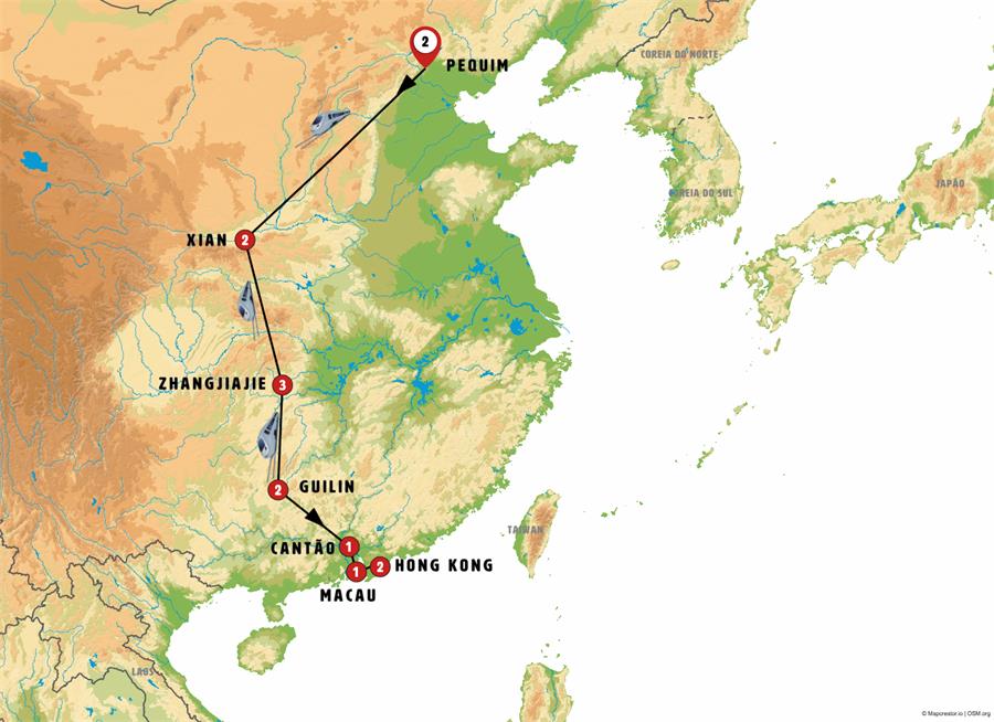 Cantão, faremos uma visita de aproximadamente duas horas nesta pujante metrópole localizada ao sul da China, passearemos pela rua Shangiaxju com seu mercado tradicional, conheceremos a Casa do Clã Chen do final do século XIX e percorreremos a zona ribeirinha do rio. Tempo livre e almoço incluído. À tarde viajaremos para ZHUHAI, junto ao mar da China, pararemos junto ao impressionante Teatro da Ópera, construído em um terreno que pertencia ao mar, inaugurado em 2016, sua impressionante forma simboliza o sol e a lua. CRUZAREMOS A FRONTEIRA e entraremos em MACAU, onde conheceremos a região dos cassinos, muitos deles no mesmo estilo dos de Las Vegas, sua atividade é impressionante. MUITO IMPORTANTE: Se durante sua viagem tiver que entrar novamente na China continental, após sua estadia em Macau e Hong Kong, exija um visto de entrada dupla.