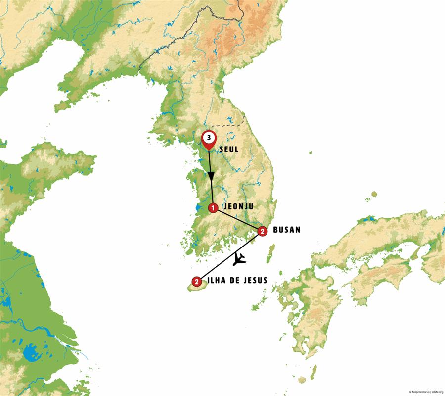 Seul, Suwon, Jeonju, damyang, haeinsa , Busan, isla de jeju.