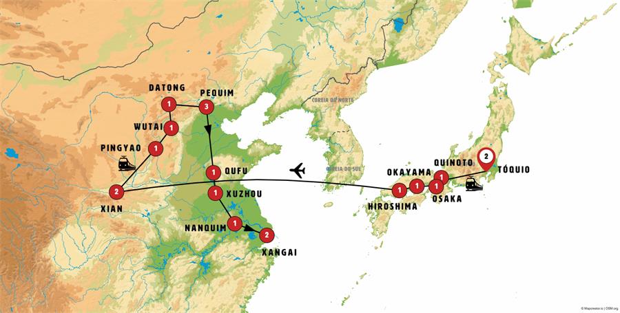 tokio, Kyoto, Nara, Osaka, Himeji, jardines de korakuen, Okayama, Kurashiki, itsukushima, Hiroshima, Xian, lingfen, mansion clan wang , Pingyao, wutai , yanmenguan , yingxian, templo colgante, Datong, jiming post, Beijing, taian , Qufu, Xuzhou, Nanjing, Suzhou, Tongli, Shanghai.