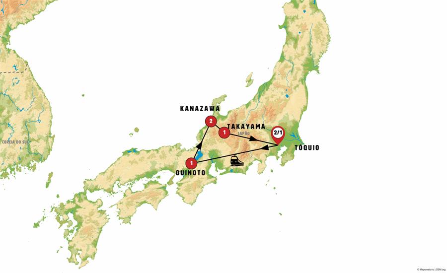 Entradas: Metrô, Templo Zojoji, Templo Meiji, Templo Sensoji, Tokyo Skytree (até o mirante Tembo Deck), Fushimi Inari, Palacio Imperial, Templo de Kinkakuji , Santuario de Shirahige Ginra e Templo Mosteiro de Eihei-Ji , Museu dos Dinossauros, Grande Buda e Pagode de Echizen, Santuário Xintoísta Heisenji Hakusan , Jardim de Kenrokuen , Aldeia pequena , Aldeia de Shirakawa-go Oguimachi , Museu- Aldeia de Hida , Museu , Castelo