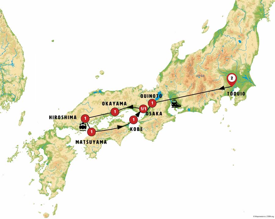 tokio, Kyoto, Nara, Osaka, Himeji, jardines de korakuen, Okayama, Kurashiki, itsukushima, Hiroshima, Matsuyama, Kotohira, Takamatsu, Naruto, Kobe.