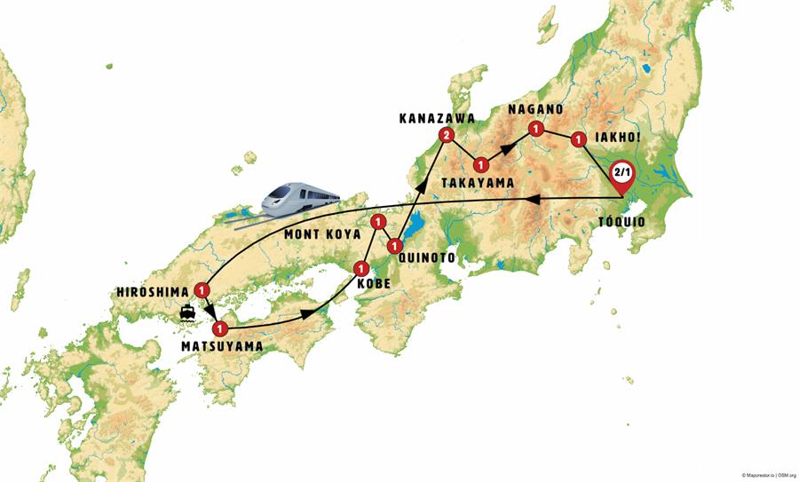 tokio, Hiroshima, Matsuyama, Kotohira, Takamatsu, Naruto, Kobe, Osaka, monte koya, Kyoto, eihei-ji, katsuyama-museo de los dinosaurios, katsuyama, Kanazawa, ainokura, Shirakawago, aldea de hida, Takayama, hida furukawa, Matsumoto, Nagano, parque de los monos, kusatsu, ikaho , Nikko.