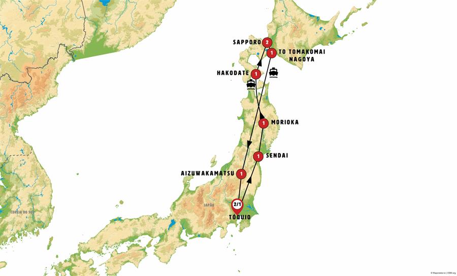 tokio, Nikko, Sendai, matshushima, hiraizumi , Morioka, Hirosaki, Aomori, Hakodate, onuma, Noboribetsu, Sapporo, toyako onsen, monte usu, ferri tomakomai sendai, yamadera , Aizuwakamatsu, ouchijuku.