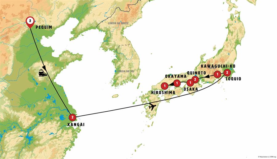 Beijing, Shanghai, tokio, monte fuji, kawaguchiko, iyashi no sato nemba, Toyota, Kyoto, Nara, Osaka, Himeji, jardines de korakuen, Okayama, Kurashiki, itsukushima, Hiroshima.