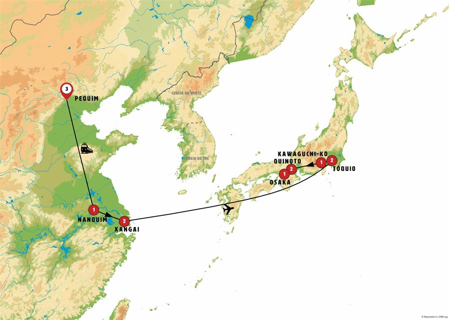 Entradas: Grande Muralha China Mutianyu, Templo do Céu, massagem dos pes, aula de Tai Chi, Cidade Proibida, Parque Jingshan, Palácio de Verão , Mausoleu de Sun Yatsen e Templo Lingu , Jardim do Humilde administrador , Jardim Yuyuan, demostracão da Cerimônia do Chá , Metrô, Templo Zojoji, Templo Meiji, Templo Sensoji, Tokyo Skytree (até o mirante Tembo Deck) , Arakurayama Sengen Park , Santuário Fuji Sengen , Vilarejo Museu , Museu Toyota , Templo de Tenryu-ji, Bosque de Bambu de Arashiyama, Santuário Fushimi Inari, Palácio Imperial, Templo de Kinkaku-ji , Templo de Todai-ji e Templo de Horyu-ji