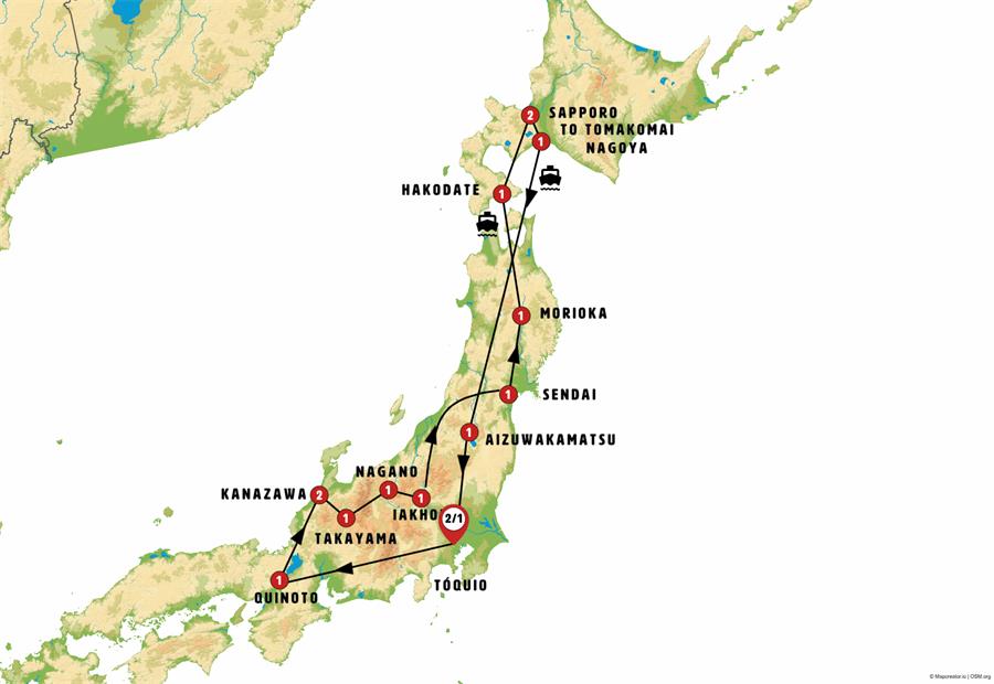 tokio, Kyoto, eihei-ji, katsuyama-museo de los dinosaurios, katsuyama, Kanazawa, ainokura, Shirakawago, aldea de hida, Takayama, hida furukawa, Matsumoto, Nagano, parque de los monos, kusatsu, ikaho , Nikko, Sendai, matshushima, hiraizumi , Morioka, Hirosaki, Aomori, Hakodate, onuma, Noboribetsu, Sapporo, toyako onsen, monte usu, ferri tomakomai sendai, yamadera , Aizuwakamatsu, ouchijuku.