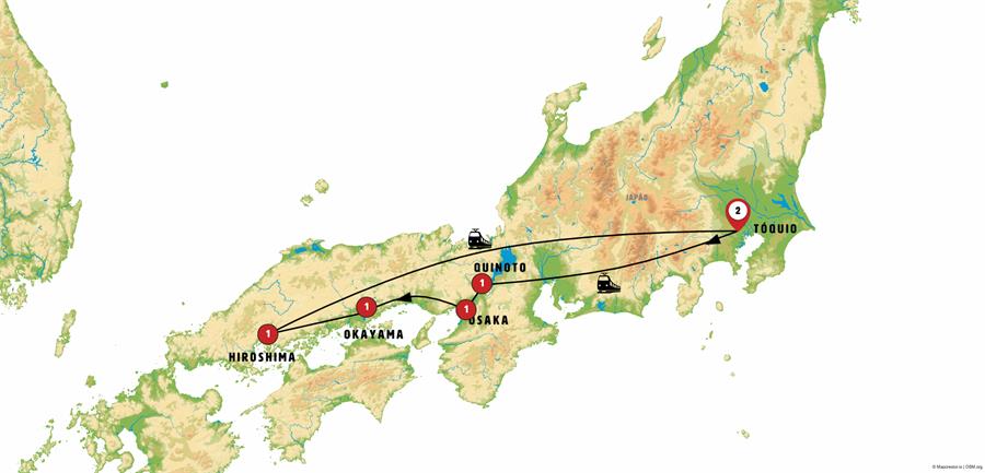 tokio, Kyoto, Nara, Osaka, Himeji, jardines de korakuen, Okayama, Kurashiki, itsukushima, Hiroshima.