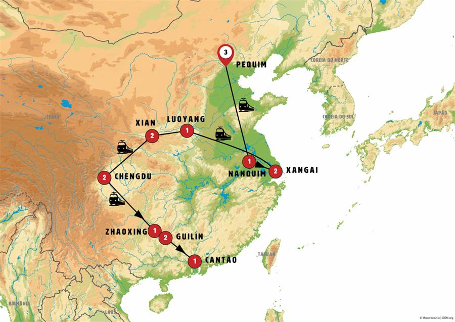 Beijing, Nanjing, Suzhou, Tongli, Shanghai, Luoyang, longmen , sanmexia, Xian, Chengdu, pueblo miao, zhaoxing, guangxiao, chengyang, longsheng, Guilin, crucero por el rio li, yangshuo, huangyao, canton.