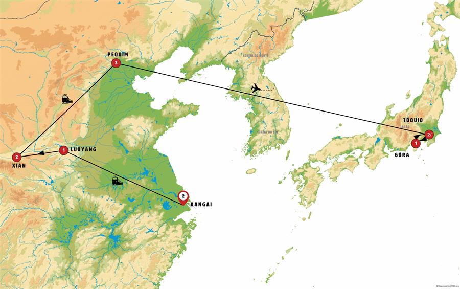 Entradas: Jardim Yuyuan, demostracão da Cerimônia do Chá, Templo budista do Cavalo Branco , Grutas budistas , Templo Baoulon, Museu Guo , Museu do Exercito de Terracota, pequena pagode do ganso e breve espetáculo de instrumentos tradicionais na Torre do Tambor (nem sempre garantido) , Cidade Proibida, Parque Jingshan, Palácio de Verão , Grande Muralha China Mutianyu, Templo do Céu, massagem dos pes, aula de Tai Chi , Metrô,Templo Zojoji, Templo Meiji, Templo Sensoji, Tokyo Skytree (até o mirante Tembo Deck) , Templo Hokoku-ji e bosque de bambú, Templo Sugimoto-dera, Grande Buda (Daibutsu) , Castelo , Castelo , Castelo , Santuário Fuji Sengen