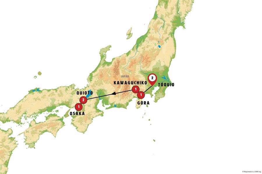 tokio, Kamakura, enoshima, Odawara, monte fuji, kawaguchiko, iyashi no sato nemba, Toyota, Kyoto, Nara, Osaka.