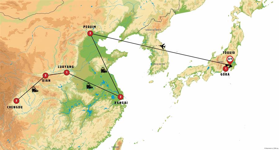 Entradas: Metrô,Templo Zojoji, Templo Meiji, Templo Sensoji, Tokyo Skytree (até o mirante Tembo Deck), Templo Hokoku-ji e bosque de bambú, Templo Sugimoto-dera, Grande Buda (Daibutsu) , Castelo , Castelo , Castelo , Santuário Fuji Sengen , Cidade Proibida, Parque Jingshan, Palácio de Verão , Grande Muralha China Mutianyu , Jardim Yuyuan, demostracão da Cerimônia do Chá , Templo budista do Cavalo Branco , Grutas budistas , Templo Baoulon, Museu Guo , Museu do Exercito de Terracota, pequena pagode do ganso e breve espetáculo de instrumentos tradicionais na Torre do Tambor (nem sempre garantido) , Sistema de irrigacão em Dujiangyan, Montanha sagrada de Quingcheng Shan