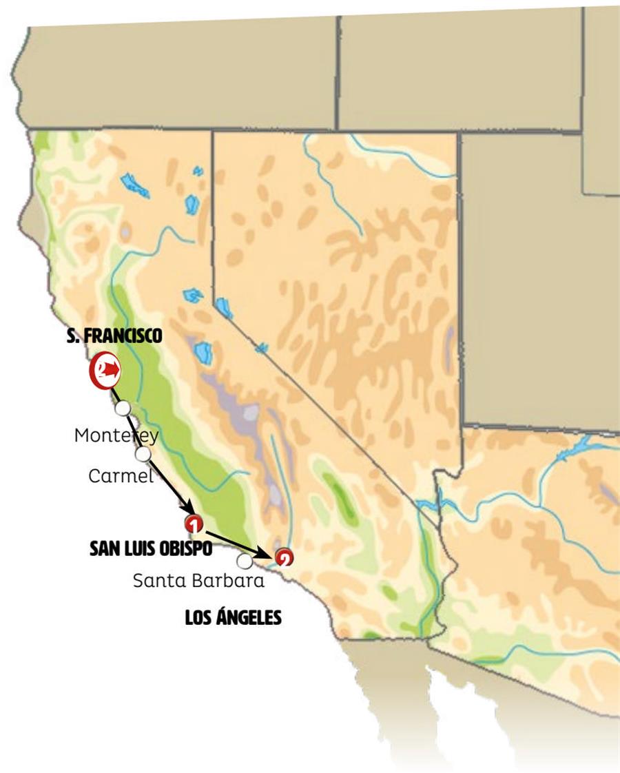 San Francisco SFO, Monterey, Carmel, San Luis Obispo, Santa Barbara, Los Angeles.