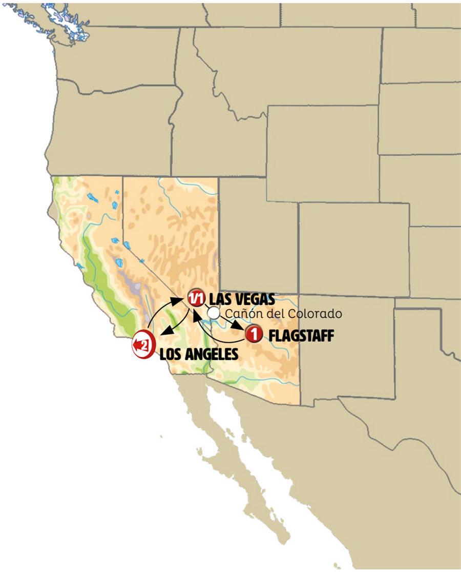Los Angeles, Las Vegas, cañon del colorado, Flagstaff.