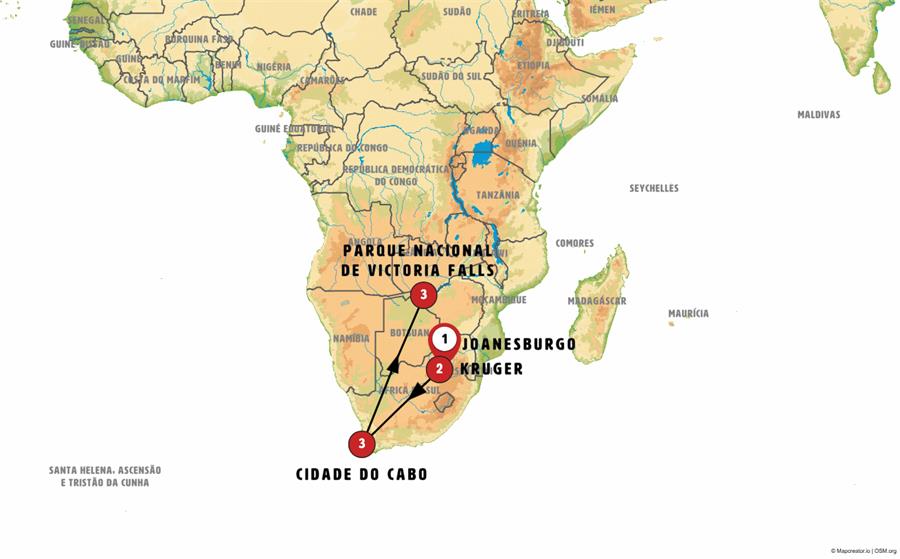 Joanesburgo, Mpumalanga, Kruger, Pretória, Cape Town, cataratas victoria.