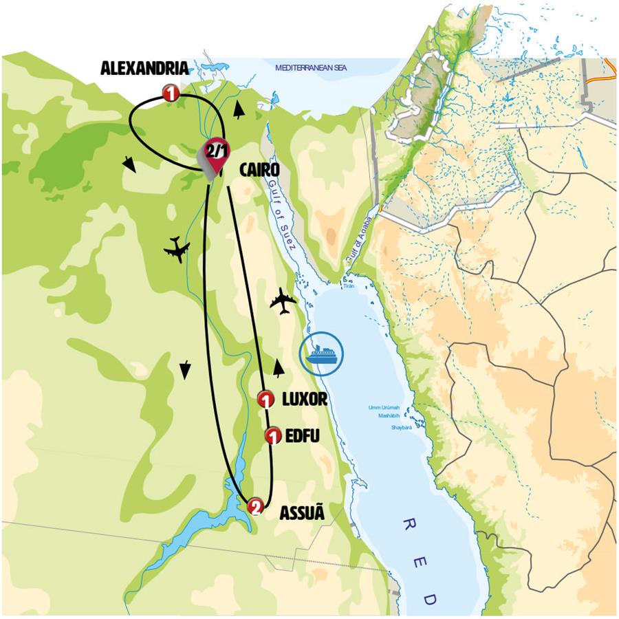 Cairo, Wadi al Natrun, Alexandria, rosseta, Aswan, Kom Ombo, Edfu, Esna, Luxor.