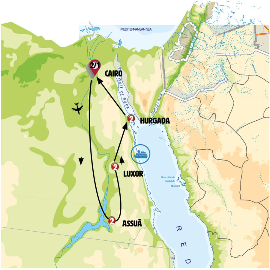 Cairo, Aswan, Kom Ombo, Edfu, Esna, Luxor, dendera, hurgada, monasterios san pablo y san antonio, al galala.