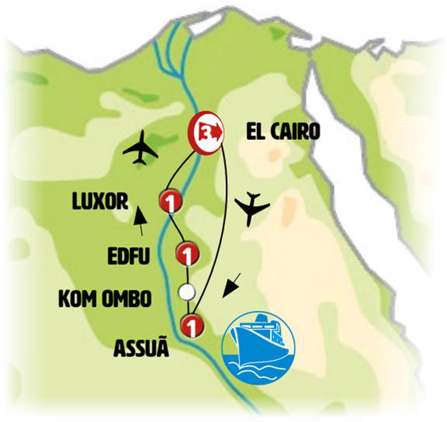 Vuelos incluidos: Cairo-Aswan, Luxor-Cairo
