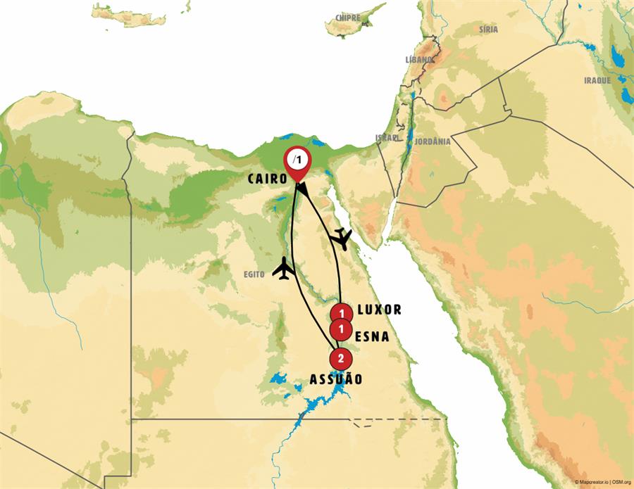 Cairo, Luxor, Esna, Edfu, Kom Ombo, Aswan.