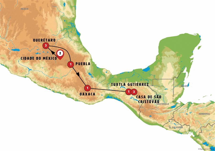Cidade do México, Queretaro, Tula, Puebla, Oaxaca, san pablo villa de mitla , Tuxtla Gutiérrez, Canon del Sumidero, chiapa del corzo, Zinacantan, San Juan Chamula, San Cristobal de Las Casas.
