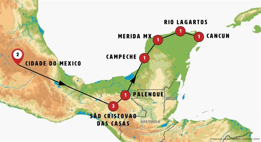 Cidade do México, Tuxtla Gutiérrez, Canon del Sumidero, San Cristobal de Las Casas, Agua Azul, Misol Ha, Palenque, Campeche, merida mx, izamal, Chichen Itza, rio lagartos, cenote choj ha, Cancun.