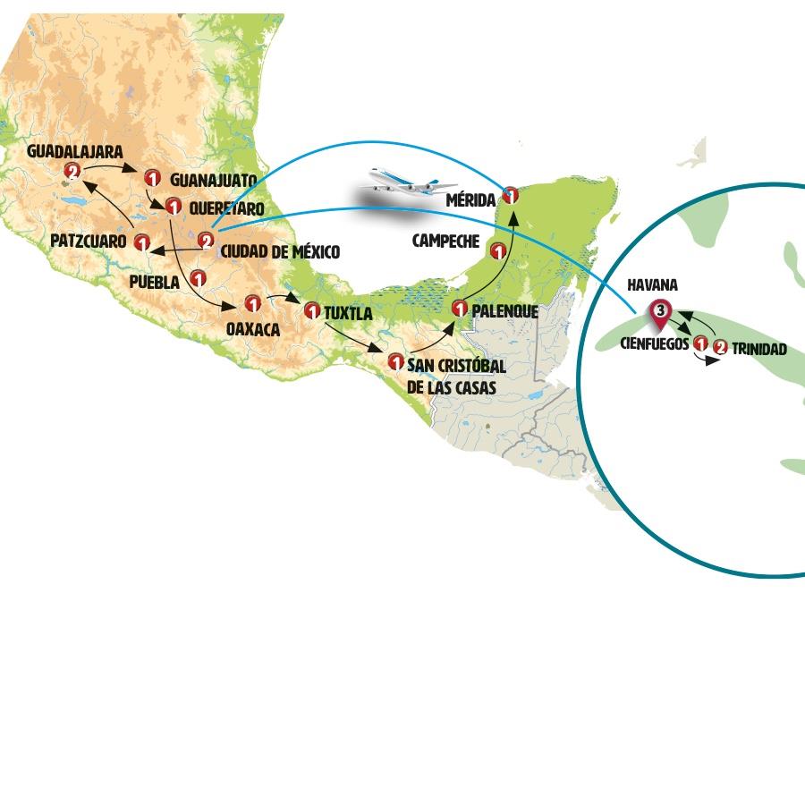 Vuelos incluidos: La Habana - Mexico, Merida - Cidade do Mexico