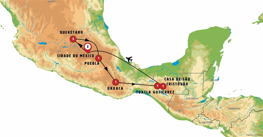 Cidade do México, Queretaro, Tula, Puebla, Oaxaca, san pablo villa de mitla , Tuxtla Gutiérrez, Canon del Sumidero, chiapa del corzo, Zinacantan, San Juan Chamula, San Cristobal de Las Casas.
