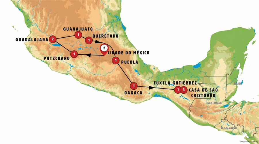 Conheceremos o CÂNION DO SUMIDERO, navegaremos de lancha por este impressionante cânion de quase 1 km de profundidade e 14 km de comprimento. Em seguida faremos um passeio por CHIAPA DEL CORZO, lugar colonial de tradição e cultura. Após, nos adentraremos na cultura maia, conheceremos belos vilarejos habitados pelos índios Tzotziles. Em ZINACANTAN poderemos admirar os vestidos que usam suas mulheres, assim como suas lojas-oficinas de teares. Em SAN JUAN DE CHAMULA nos surpreenderá sua igreja que mistura em seus ritos o cristianismo com as tradições pré-colombianas. Continuaremos rumo a SAN CRISTÓBAL DE LAS CASAS. Tarde livre nesta belíssima cidade colonial fundada em 1528.