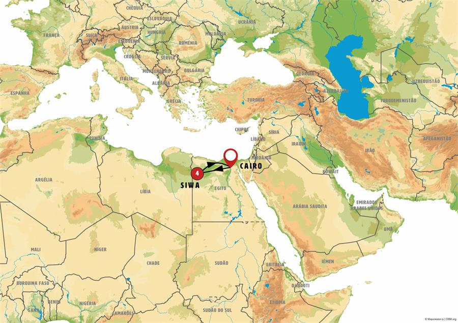 Logo cedo pela manhã, saímos com destino a SIUÁ, um  oásis histórico e um dos mais espetaculares do Egito. Localizado a somente 50  km da fronteira com a Líbia, Siuá encontra-se em pleno deserto do Saara,  rodeada por um mar de dunas e palmeiras. O isolamente geográfico de Siuá ajudou  a proteger uma sociedade única que se distingue claramente da cultura egípcia  dominante. Atualmente, as tradições locais e o Siui, a língua berbere local,  ainda dominam. Faremos uma parada em MARSA MATRUTH para descanso.  Chegada ao hotel em Siuá, check in e descanso. Pela noite,  pode-se caminhar pela cidade fundada no século  XIII e habitada até 1926, quando três dias de tempestades danificaram  gravemente os prédios em seu interior. A principal atração é a espetacular Fortaleza  de Shali e as lojas que a cercam com seus artesanatos únicos, feitos  principalmente de sal e muitas cores. Da fortaleza você pode ver quase toda a  cidade. Retorno ao hotel. Hospedagem.